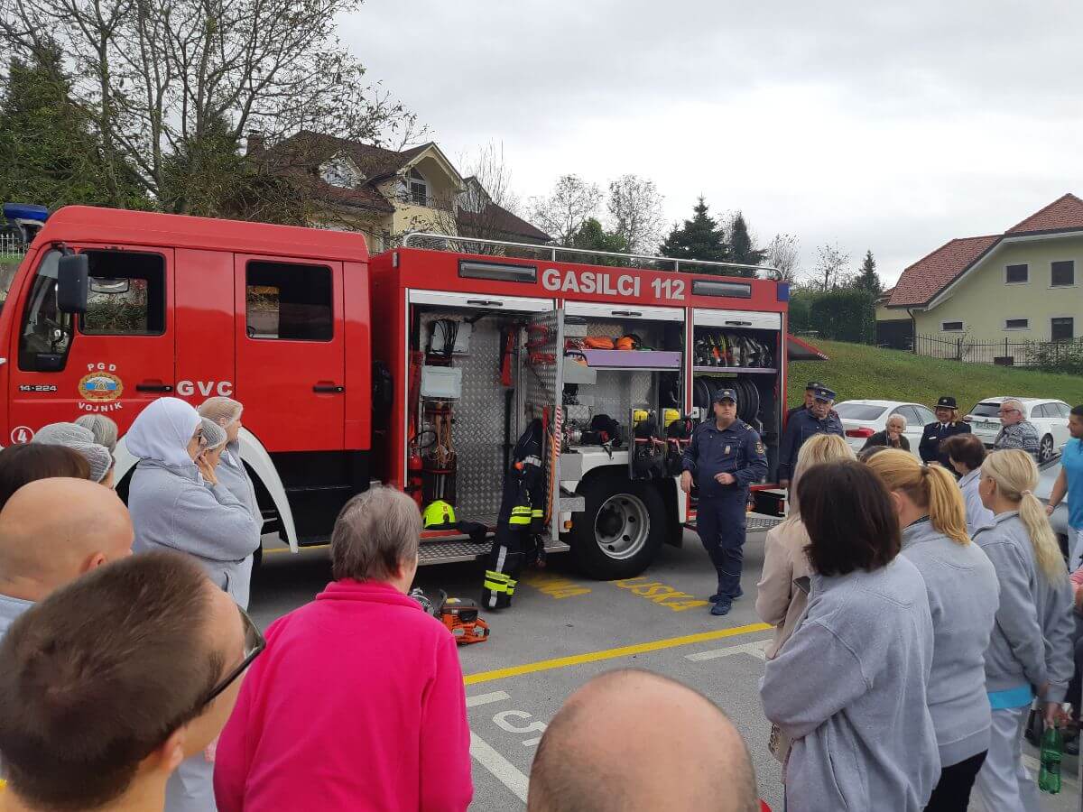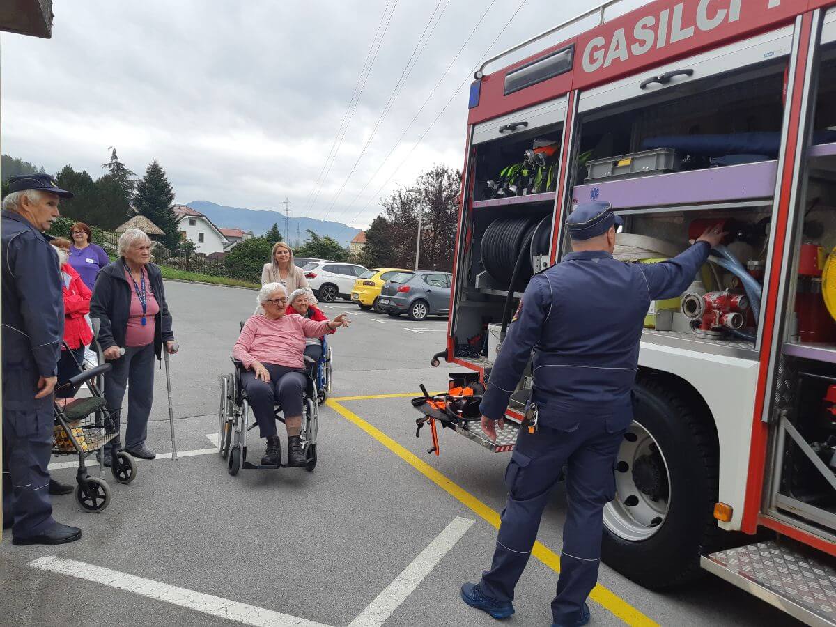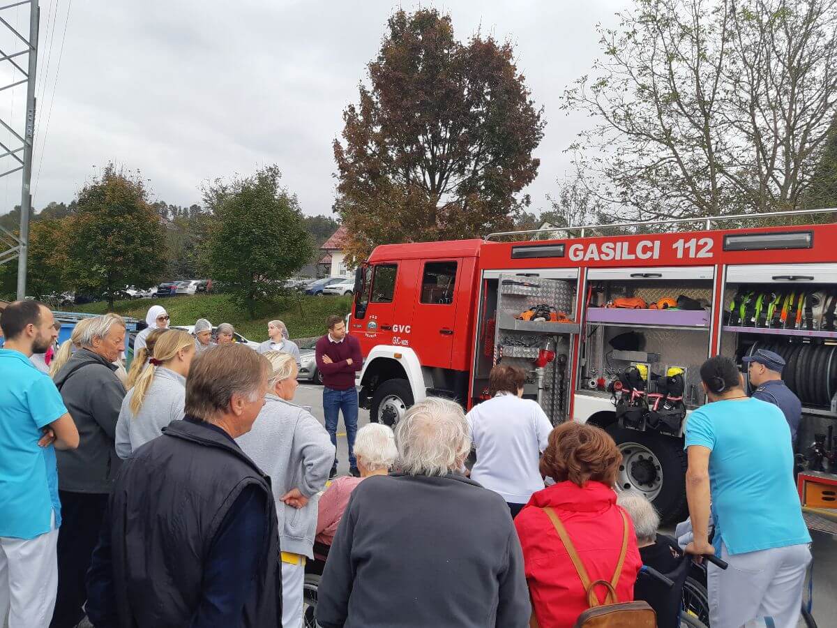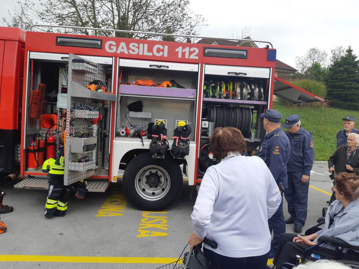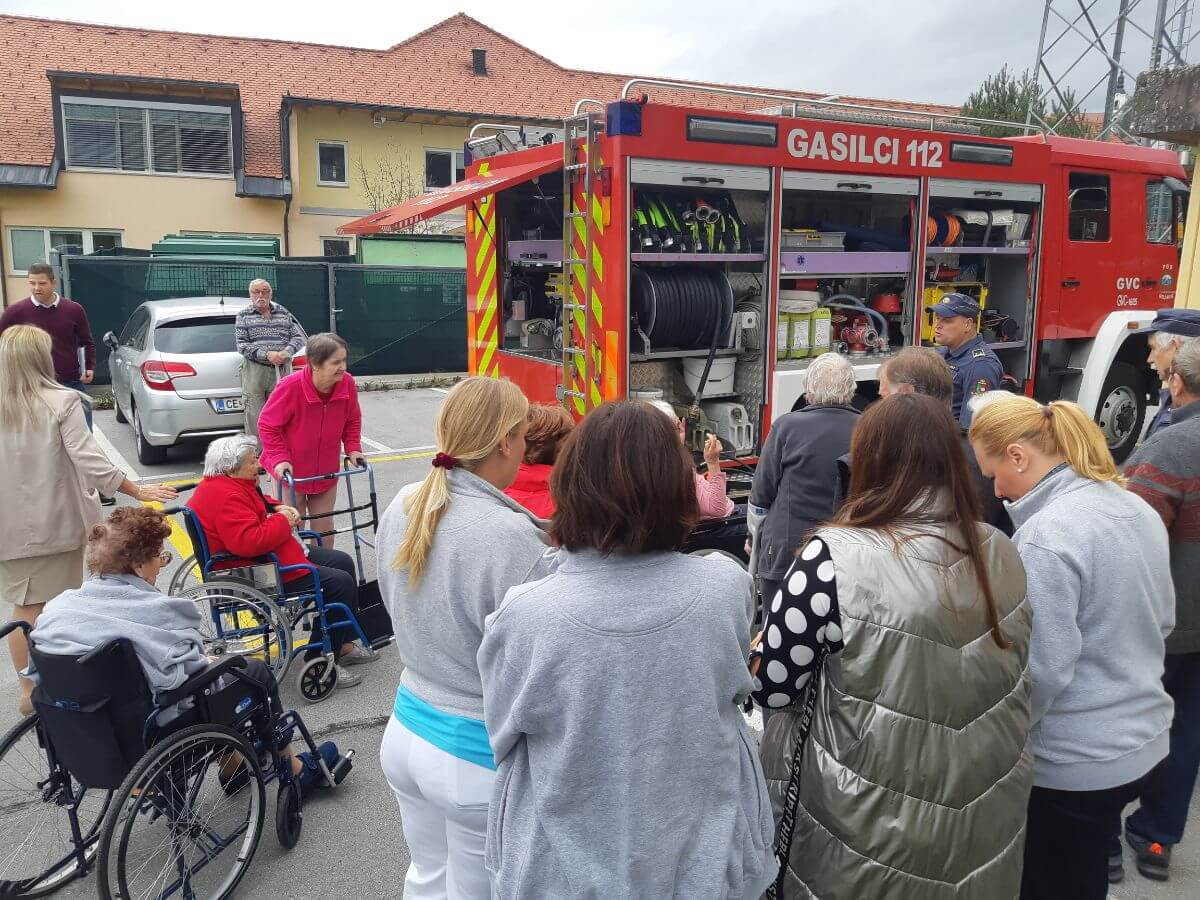 Mesec oktober je poznan kot mesec požarne varnosti, zato smo v ta namen v domu obeležili dogodek za stanovalce in zaposlene. Najprej nam je zelo zanimivo predavanje o gasilcih, gasilskih uniformah in o delovanju gasilskih društev pripravila gospa Breda Verbovšek. Po predavanju je sledila evakuacijska vaja ter ogled in predstavitev gasilskega vozila. Upamo, da bo gasilsko vozilo parkirano pred našim domom samo ob takšnih predstavitvenih priložnostih in ne v primeru požara. Članom PGD Vojnik ter gospe Verbovšek iz PGD Dobrna se lepo zahvaljujemo za sodelovanje.