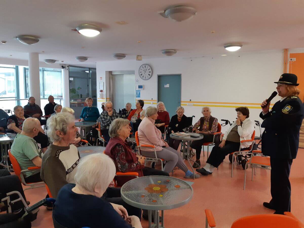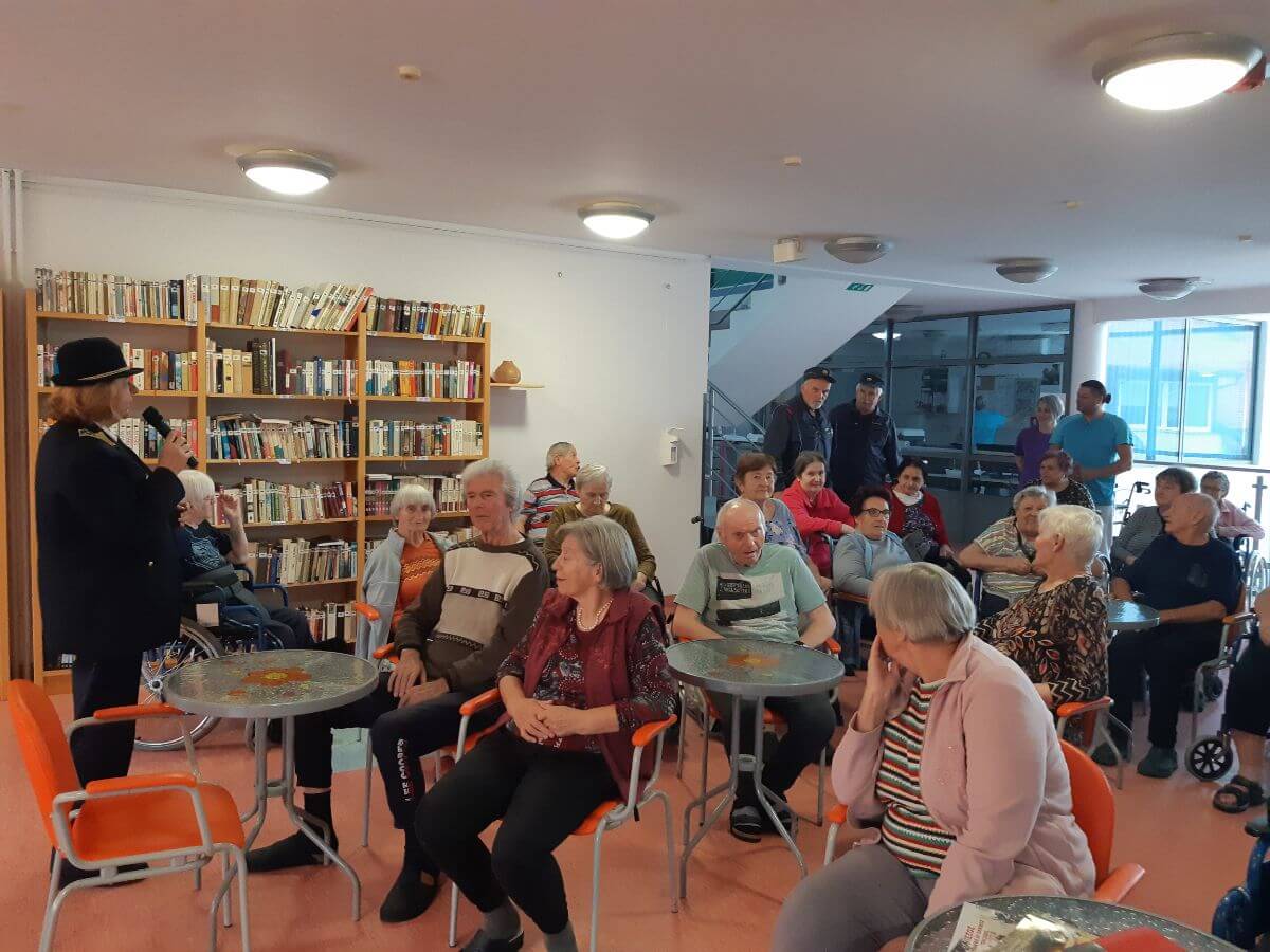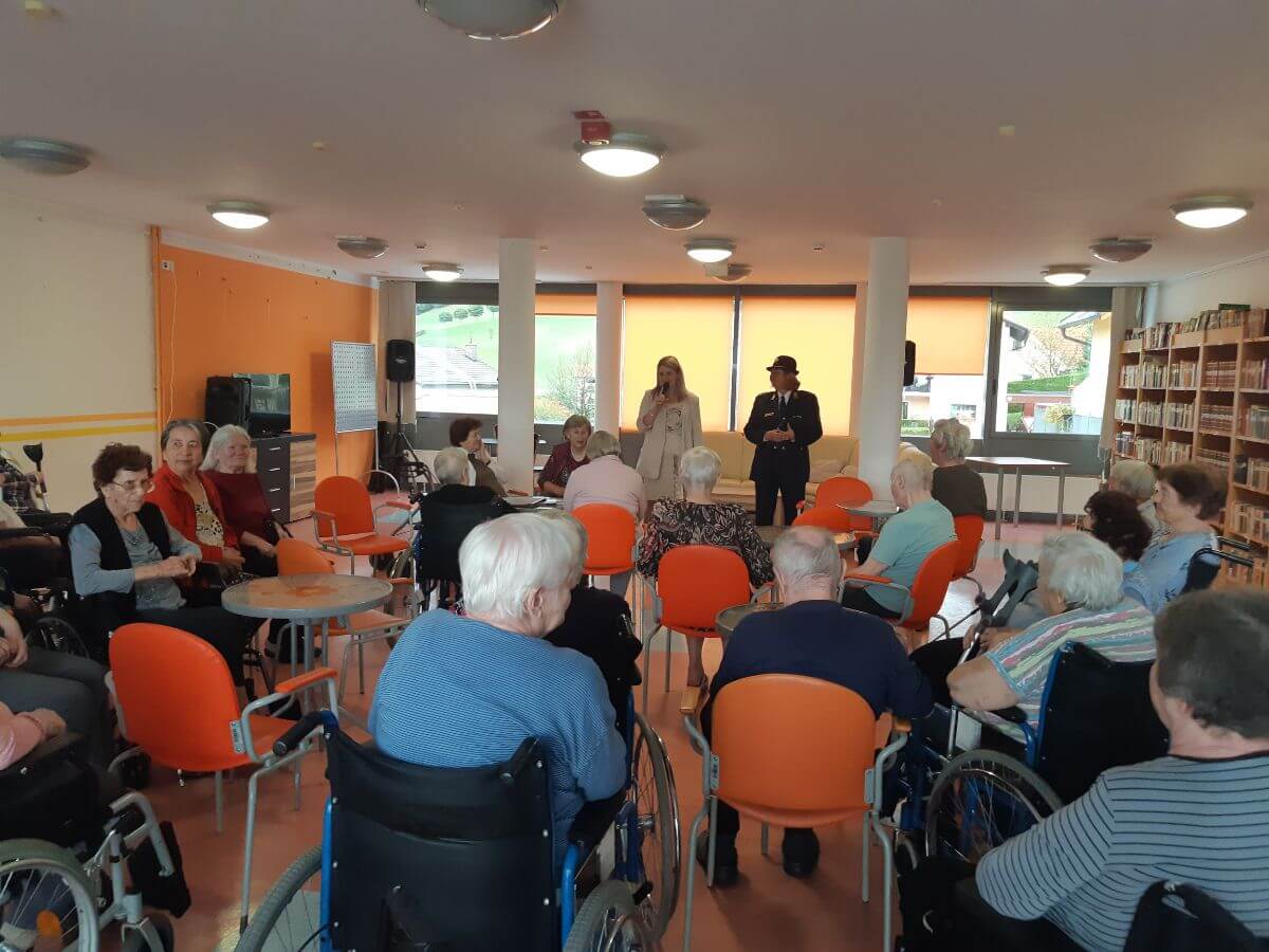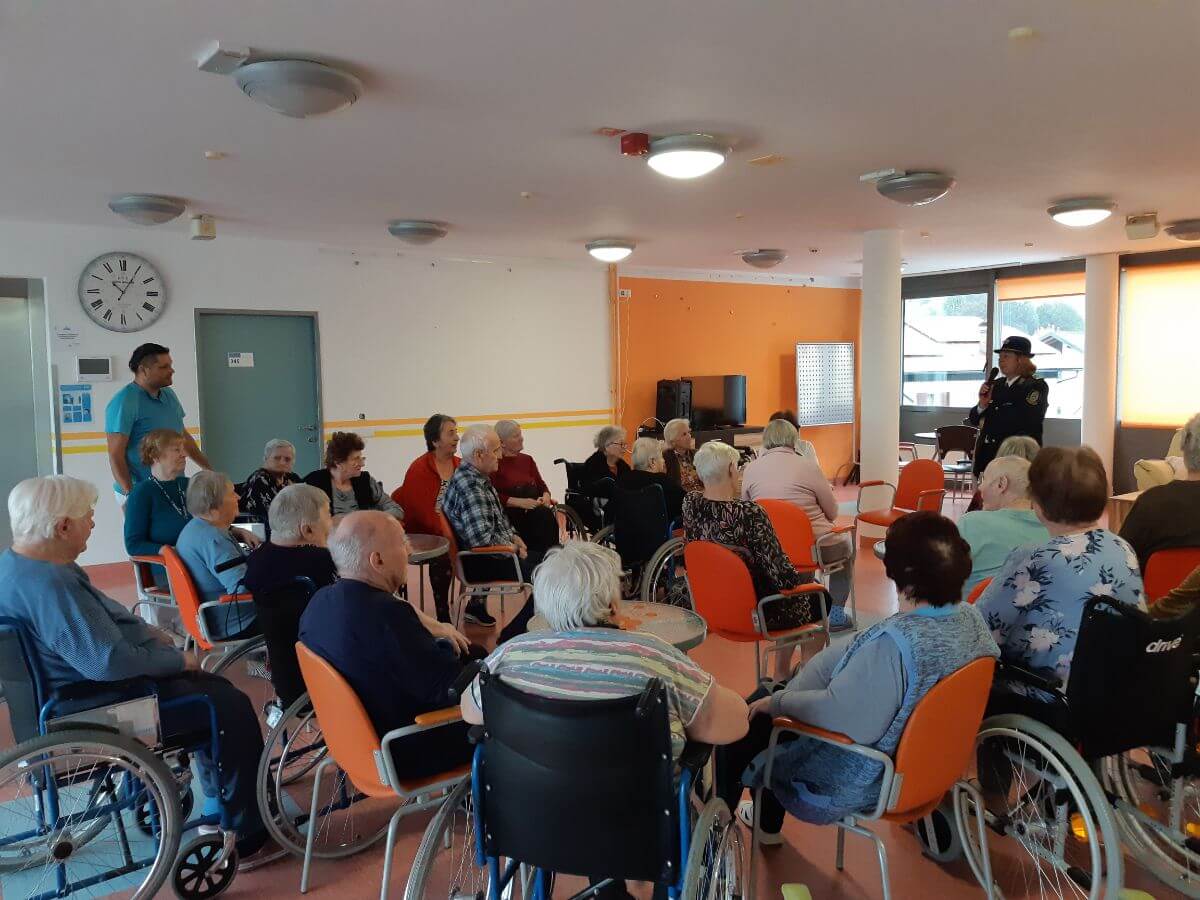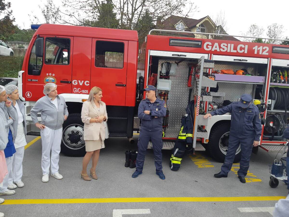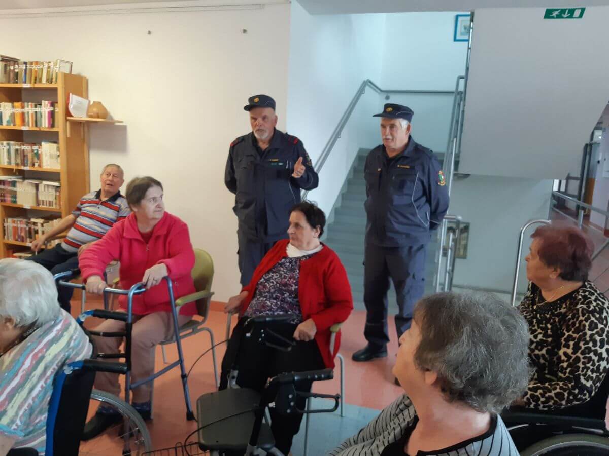 Mesec oktober je poznan kot mesec požarne varnosti, zato smo v ta namen v domu obeležili dogodek za stanovalce in zaposlene. Najprej nam je zelo zanimivo predavanje o gasilcih, gasilskih uniformah in o delovanju gasilskih društev pripravila gospa Breda Verbovšek. Po predavanju je sledila evakuacijska vaja ter ogled in predstavitev gasilskega vozila. Upamo, da bo gasilsko vozilo parkirano pred našim domom samo ob takšnih predstavitvenih priložnostih in ne v primeru požara. Članom PGD Vojnik ter gospe Verbovšek iz PGD Dobrna se lepo zahvaljujemo za sodelovanje.
