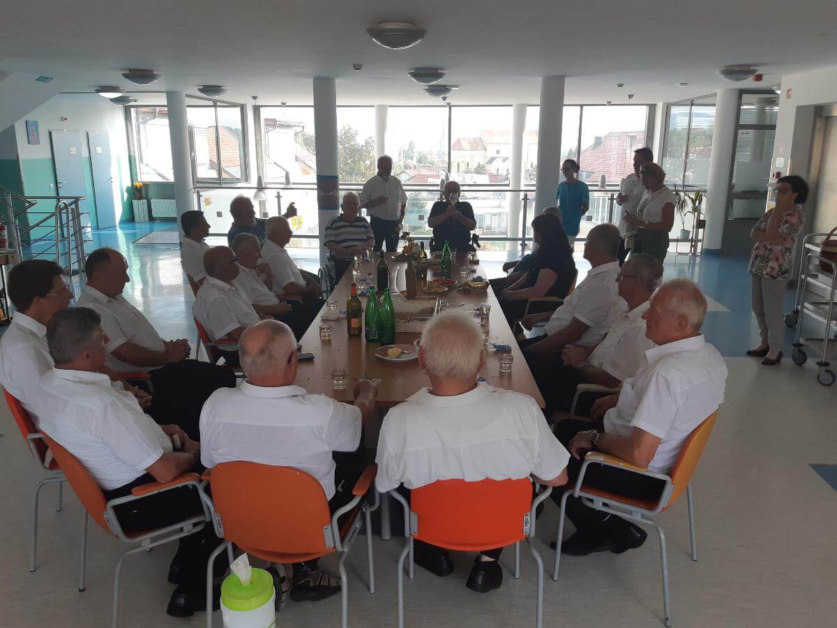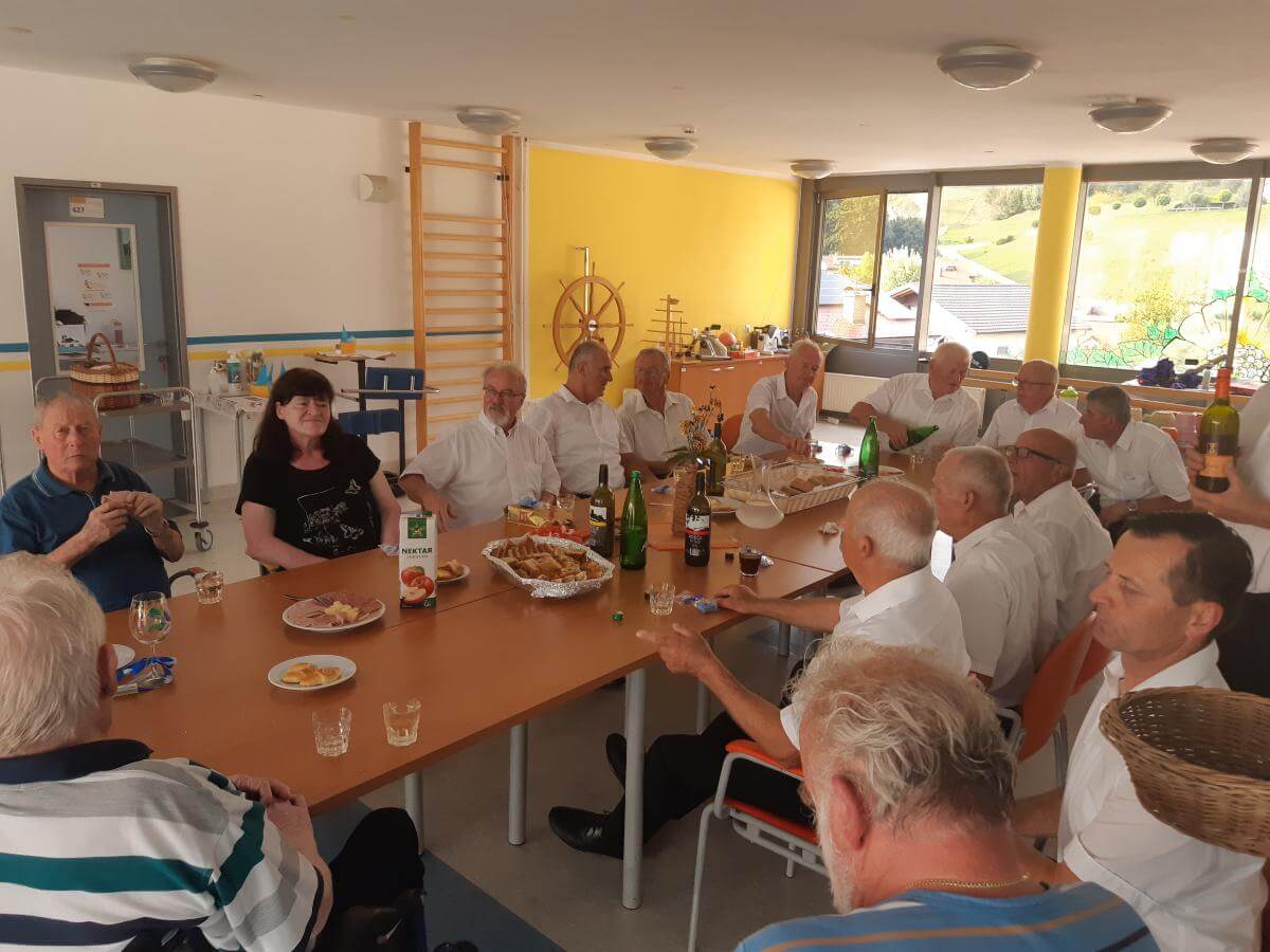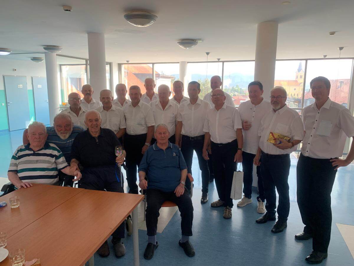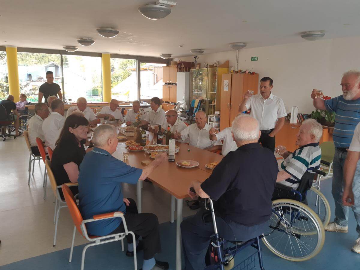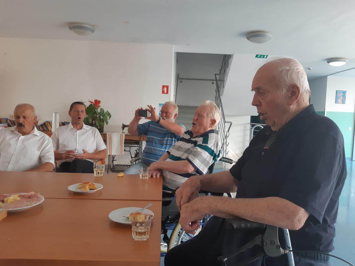 Dne 21.8.2024 je naš stanovalec, g. Jakop, slavil svoj 91. rojstni dan. Ker je bil gospod dolgoletni član moškega pevskega zbora, KUD Nova Cerkev, so zanj pripravili nastop presenečenja. Zapeli so številne ljudske, narodne pesmi in popevke, ki so jih stanovalci poznali in zapeli zraven. Pripravili smo jim pogostitev, kjer so nekaj dobrega spili ter pojedli. Prepevanje se je nadaljevalo tudi ob jedilni mizi, kjer so skupaj s slavljencem in še dvema stanovalcema, ki sta bivša člana istega pevskega zbora, zapeli še nekaj pesmi. Gospoda Vacslava Jakopa, ki je prejemnik priznanja za življenjsko delo na področju kulture v Občini Vojnik, je presenečenje neizmerno ganilo, stanovalcem pa popestrilo popoldne. Zahvaljujemo se pevcem KUD Nova Cerkev za takšno lepo gesto.