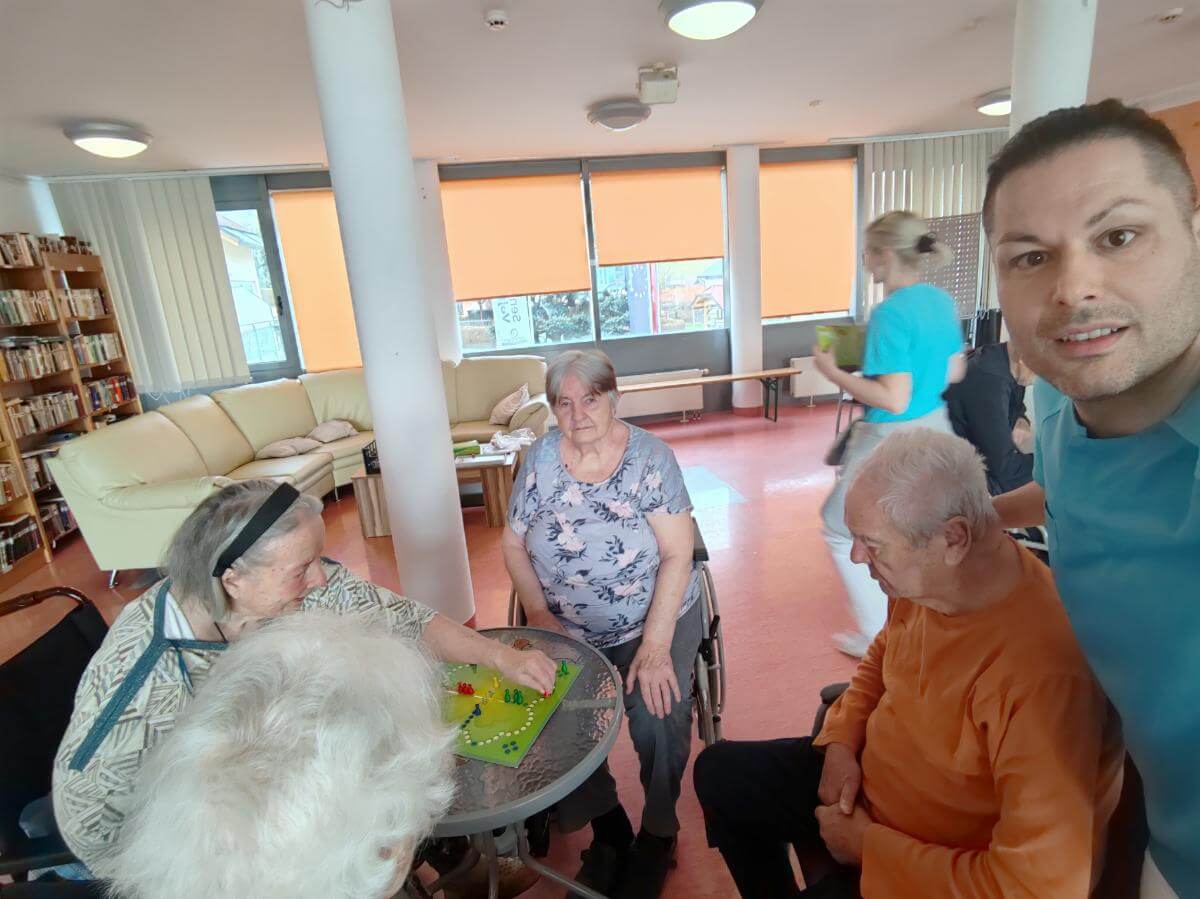 Organizirali smo turnir, kjer so se stanovalci med seboj pomerili v igranju zelo priljubljene in vsem poznane družabne igre Človek ne jezi se. Med seboj se je pomerilo kar 7 ekip igralcev, ki so napeto in budno spremljali igro. Igranje različnih družabnih iger je zelo priljubljeno med stanovalci, saj tako ohranjajo kognitivne sposobnosti, pozitivno vpliva na razpoloženje in jih med seboj povezuje. Po turnirju so se stanovalci še naprej družili ob kavi in piškotih.