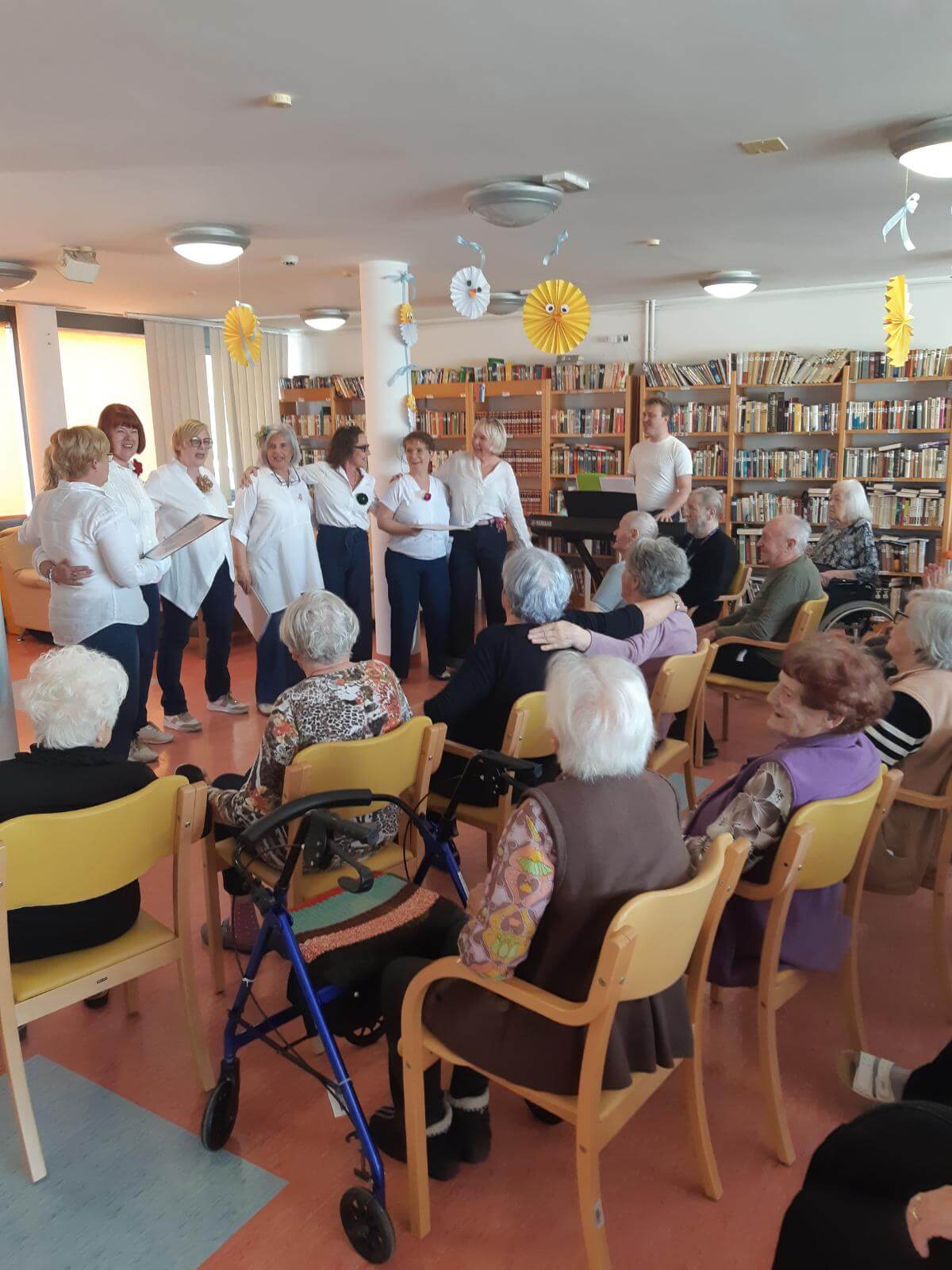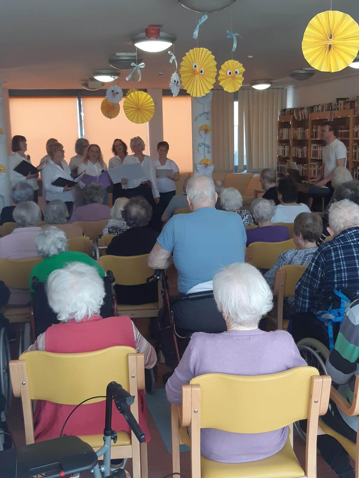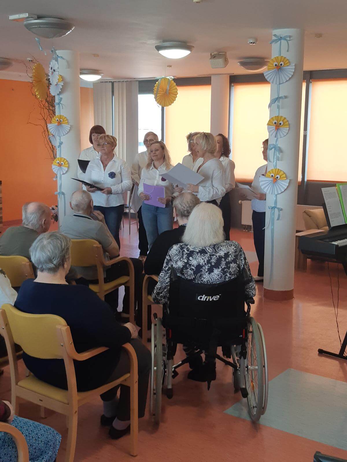 V sredo, 25. 3. 2026, je v SeneCuri Vojnik dopoldan nastopila pevska skupina Zbor za lušt, ki nam je pripravila kratek program. Pevke je na klaviaturi spremljal zborovodja g. Lovro Frelih. Stanovalke in stanovalci so uživali ob ubranem petju in druženju.