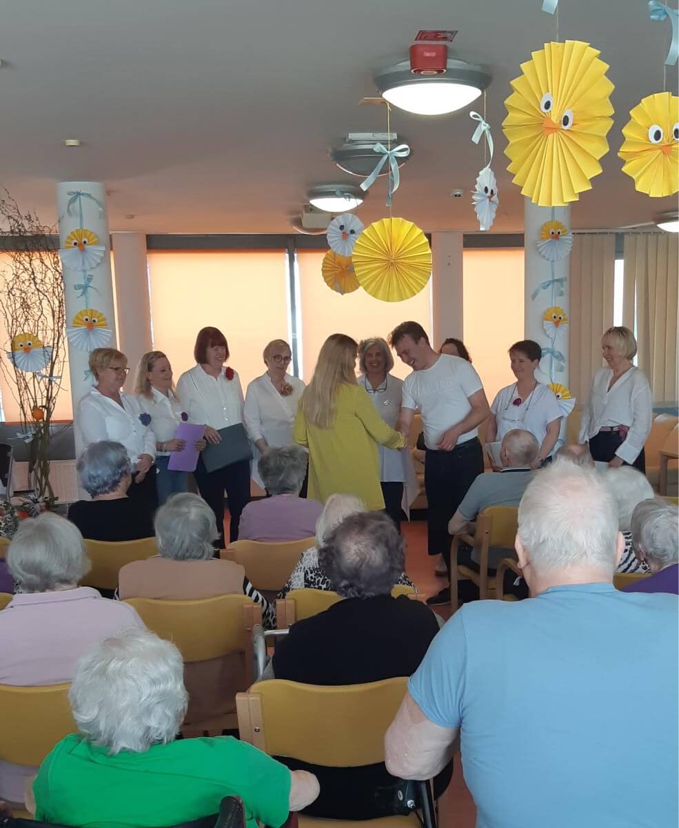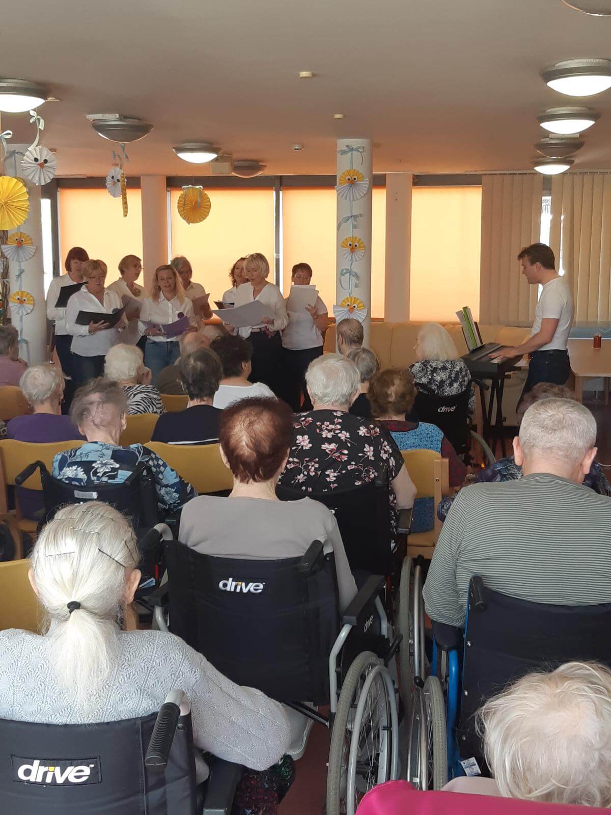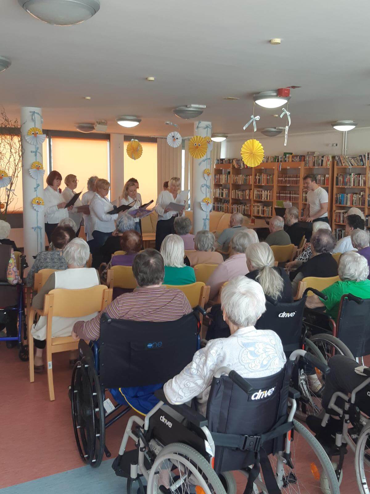 V sredo, 25. 3. 2026, je v SeneCuri Vojnik dopoldan nastopila pevska skupina Zbor za lušt, ki nam je pripravila kratek program. Pevke je na klaviaturi spremljal zborovodja g. Lovro Frelih. Stanovalke in stanovalci so uživali ob ubranem petju in druženju.