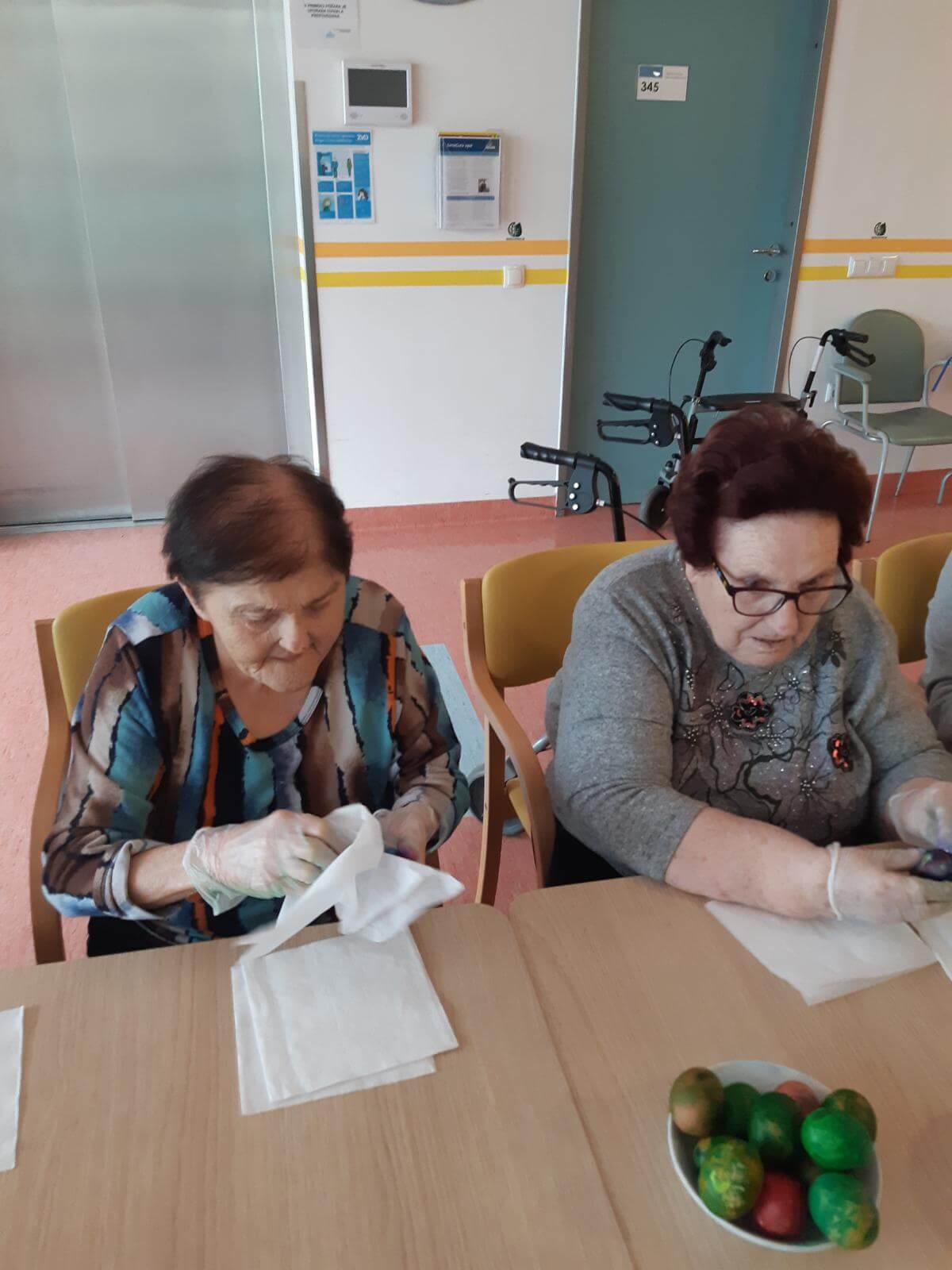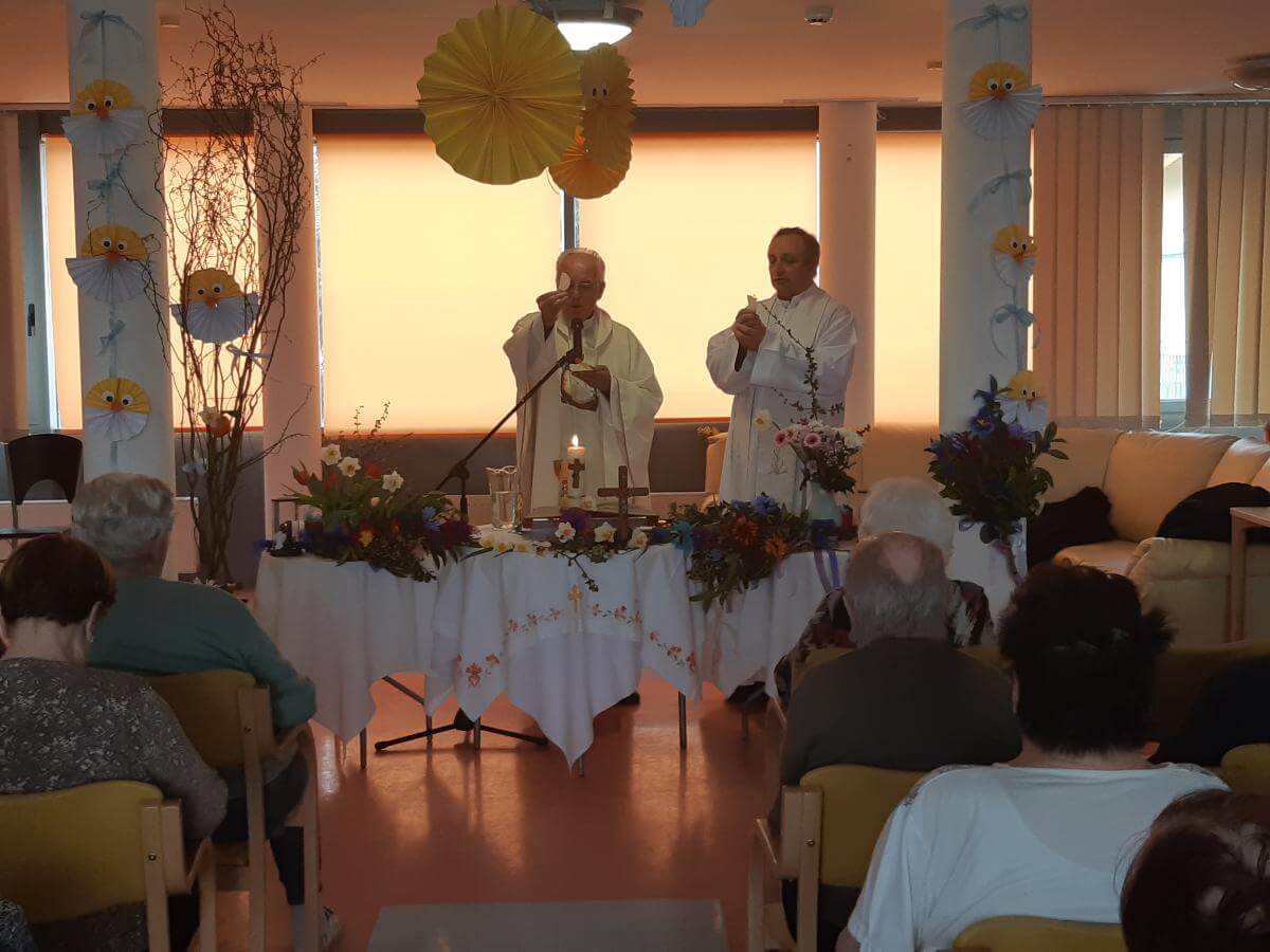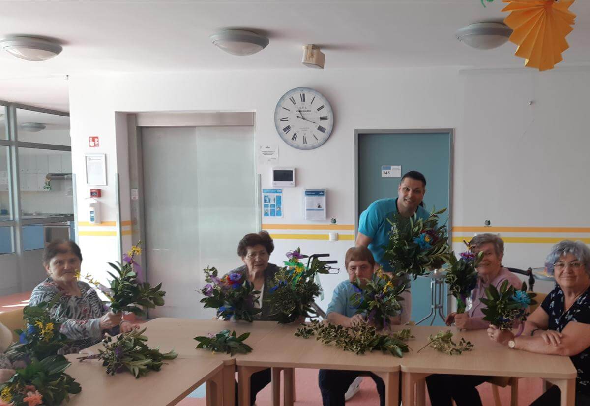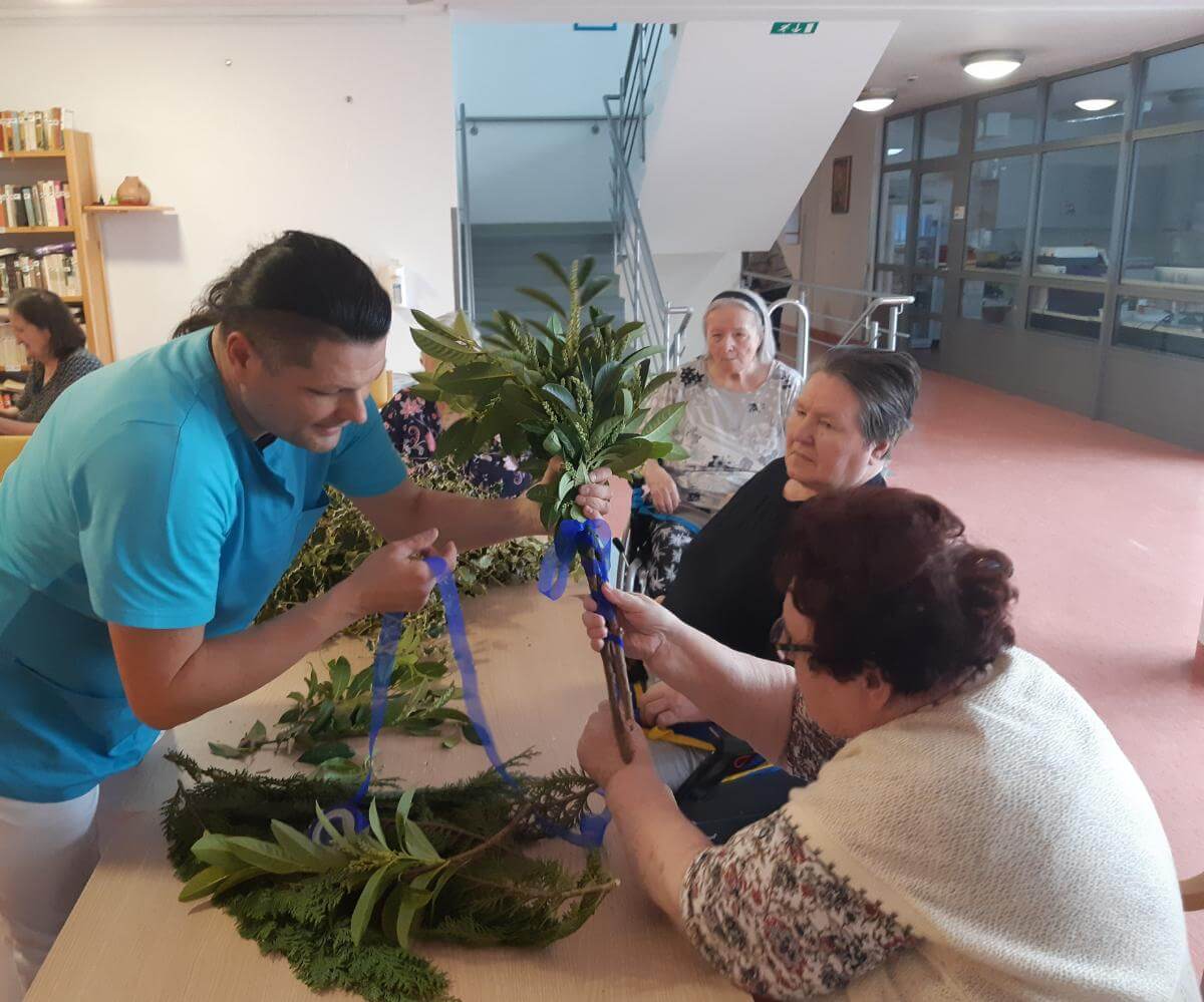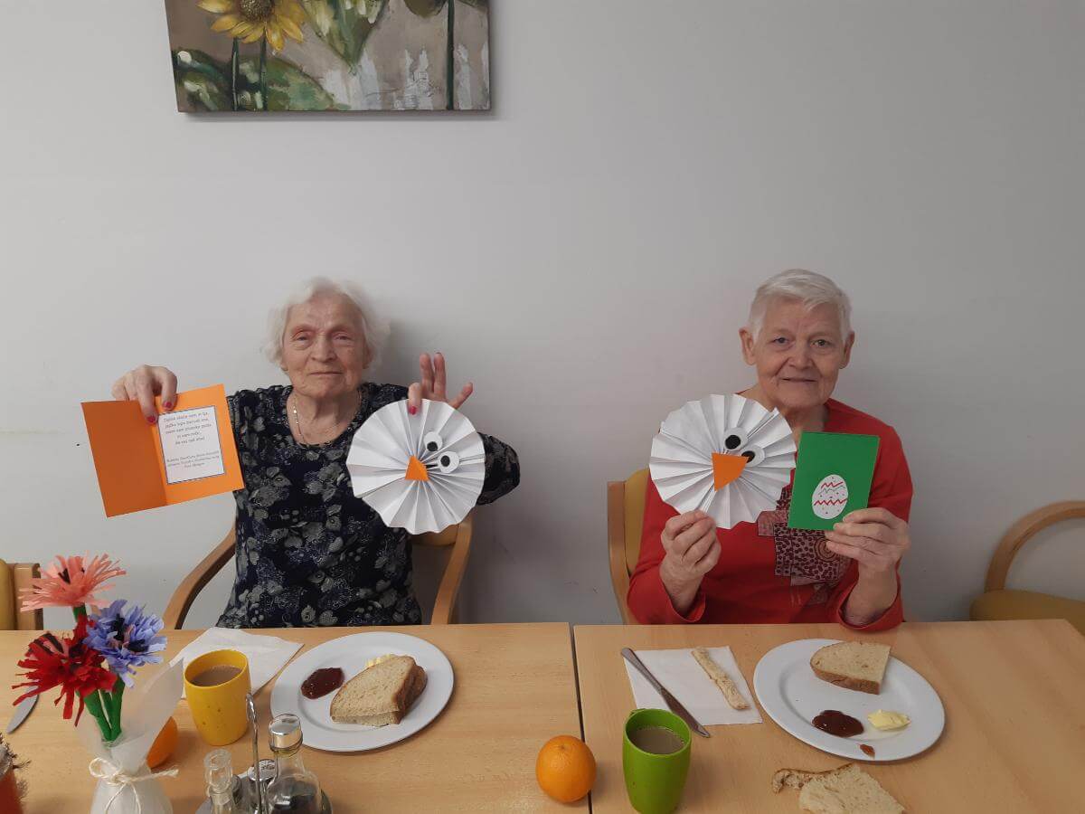 V SeneCura Vojnik smo že v mesecu marcu začeli s pripravami na prihajajoči praznik Velike noči. Izdelovali smo piščančke in vizitke iz papirja, ki so jih stanovalci kot darilo prejeli na veliki petek.  Izdelovali smo velikonočne butare, barvali pirhe in imeli velikonočno sveto mašo.