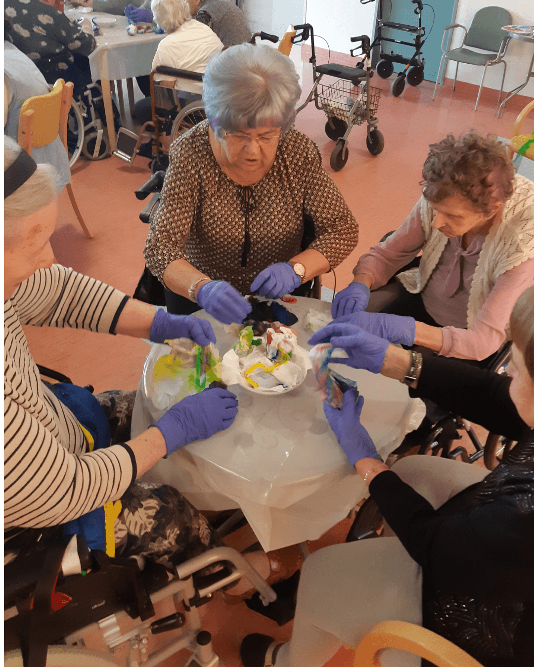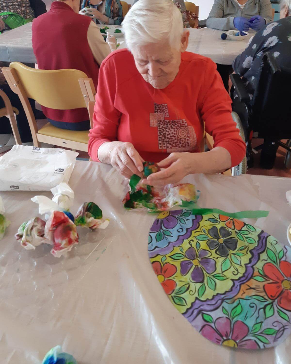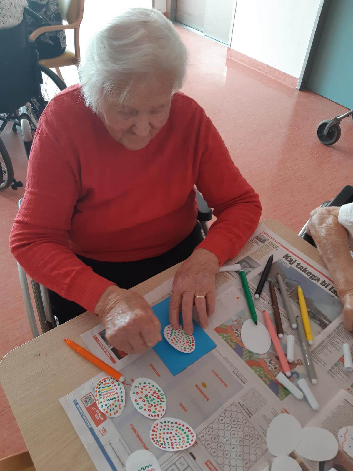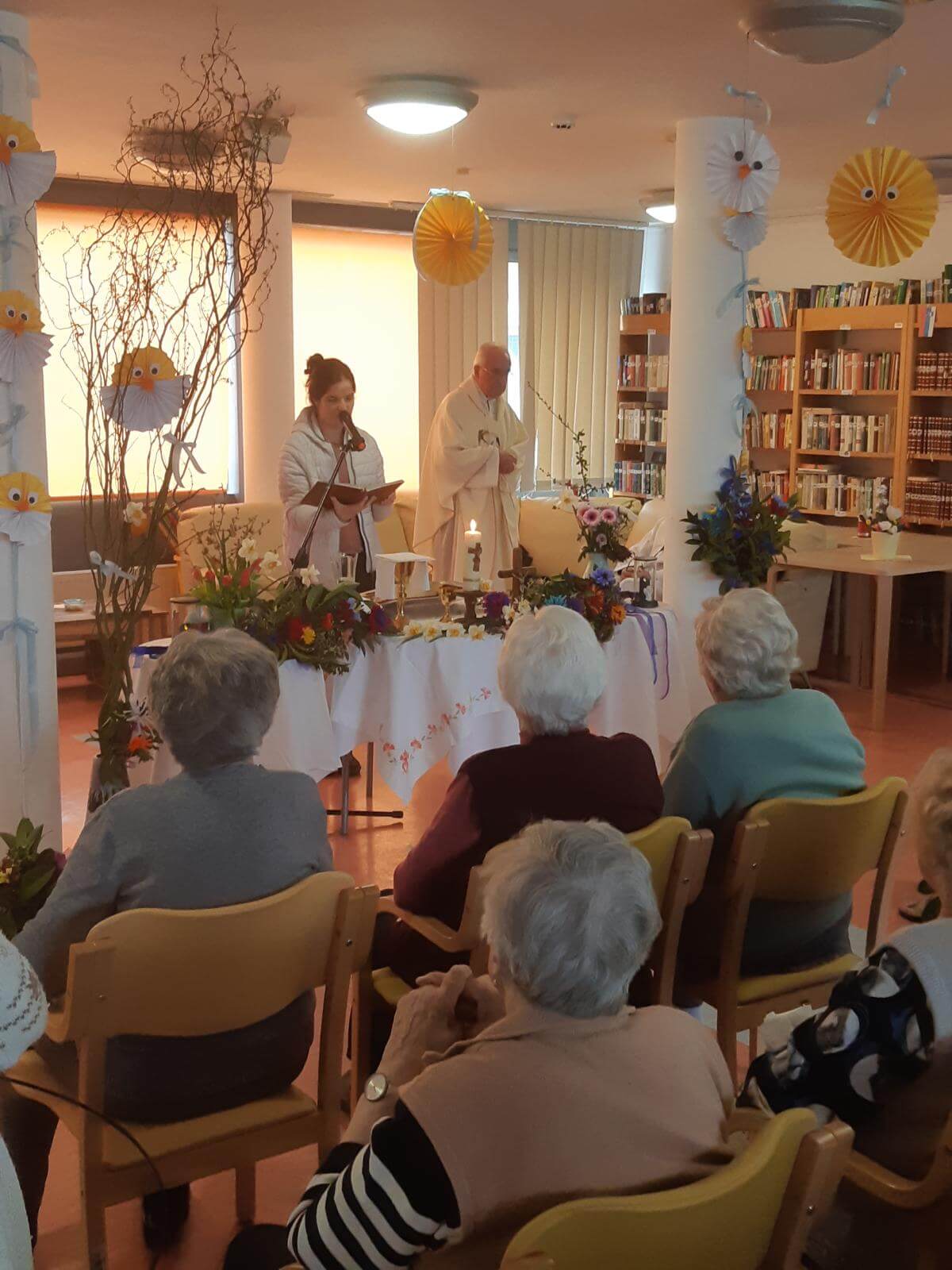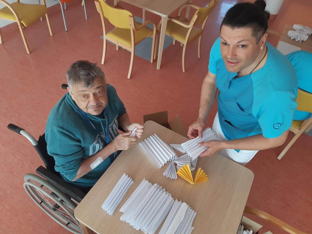 V SeneCura Vojnik smo že v mesecu marcu začeli s pripravami na prihajajoči praznik Velike noči. Izdelovali smo piščančke in vizitke iz papirja, ki so jih stanovalci kot darilo prejeli na veliki petek.  Izdelovali smo velikonočne butare, barvali pirhe in imeli velikonočno sveto mašo.