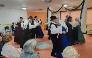 Četrtkovo popoldne so naš prireditveni prostor ogreli člani Folklorne skupine Slavko Šlander iz Celja. Predstavili so plese, ki so značilni za različne slovenske pokrajine. Njihov plesni nastop so obogatili tudi z ljudskim petjem, kateremu so se pridružili tudi stanovalci. [...]